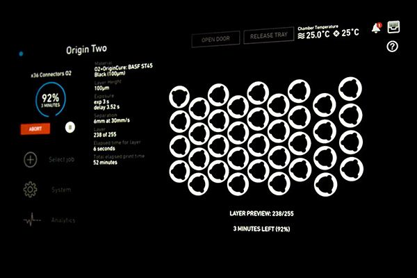 Origin Two aporta los beneficios de la manufactura aditiva para la producción de alta mezcla y bajo volumen a las aplicaciones de alta precisión. Ideal para ciclos de producción cortos; se adapta tanto a tolerancias estrictas como a piezas grandes y complejas.